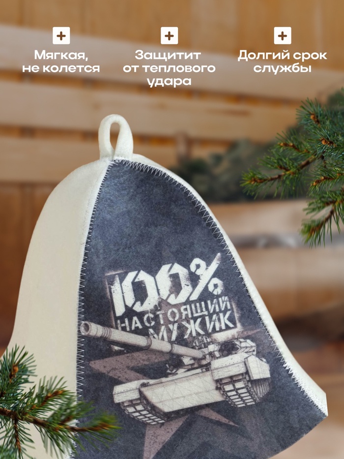 Шапка для бани и сауны с выразительным принтом «100% настоящий мужик». Создана для мужчин, ценящих комфорт и стиль в каждой детали. Комбинация шерсти (30%) и полиэфира обеспечивает идеальное сочетание теплозащиты и прочности. Универсальный размер (55-60) подойдет большинству пользователей. Дизайн с танком добавляет индивидуальности и выделяет из общей массы.