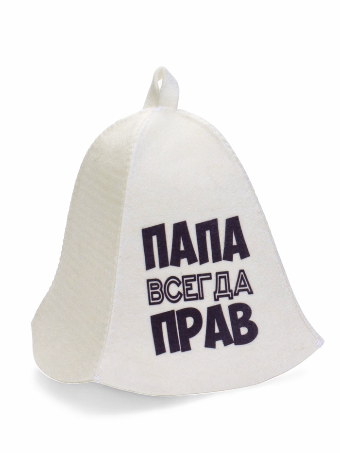 Шапка для бани и сауны, с принтом «Папа всегда прав», полиэфир 70%, шерсть 30%, белая, «Добропаровъ»