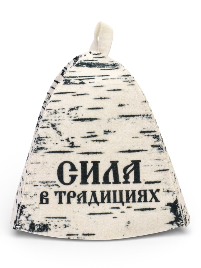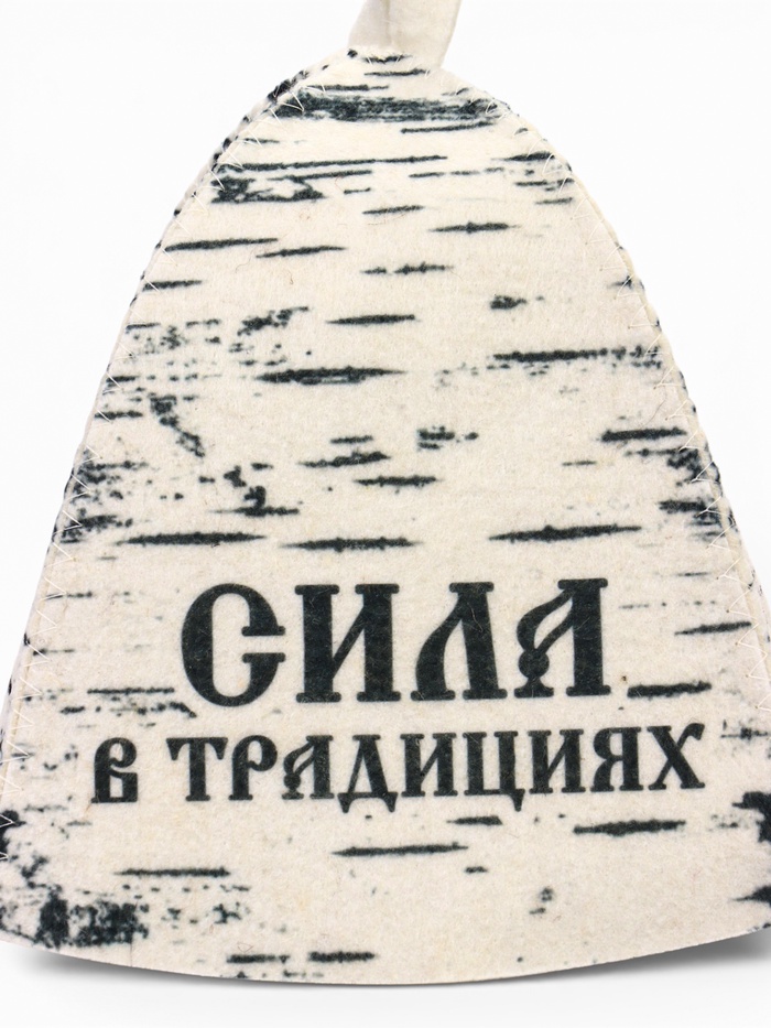 Банная шапка с принтом «Сила в традициях» — аксессуар для бани и сауны, в котором визуальный образ напрямую связан с культурой парения. Графика под дерево и выразительная надпись формируют ощущение основательности и уважения к банным обычаям.