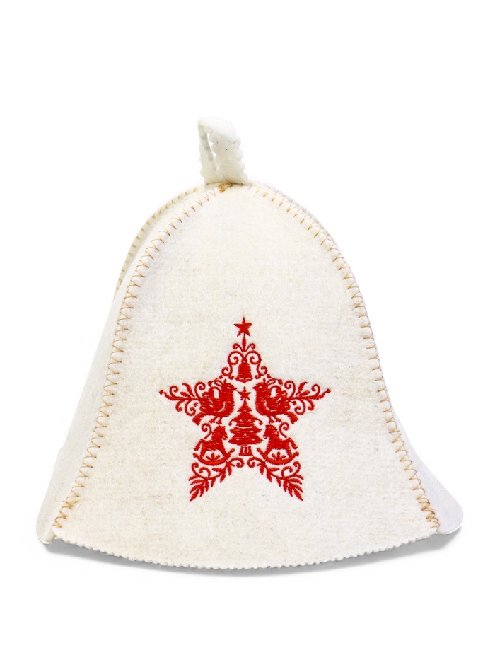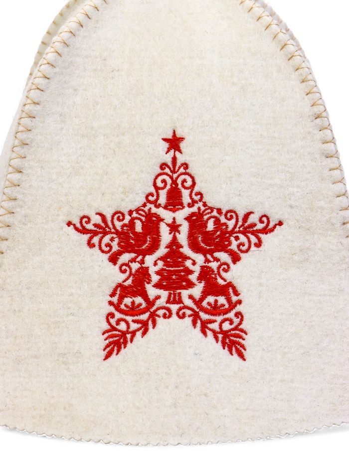 Шапка для бани вышивка "ЗВЕЗДА", светлая