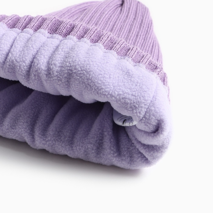 Шапка для девочки MINAKU: Cozy Winter с отворотом, сиреневая, размер 52-56 (5-7 лет)