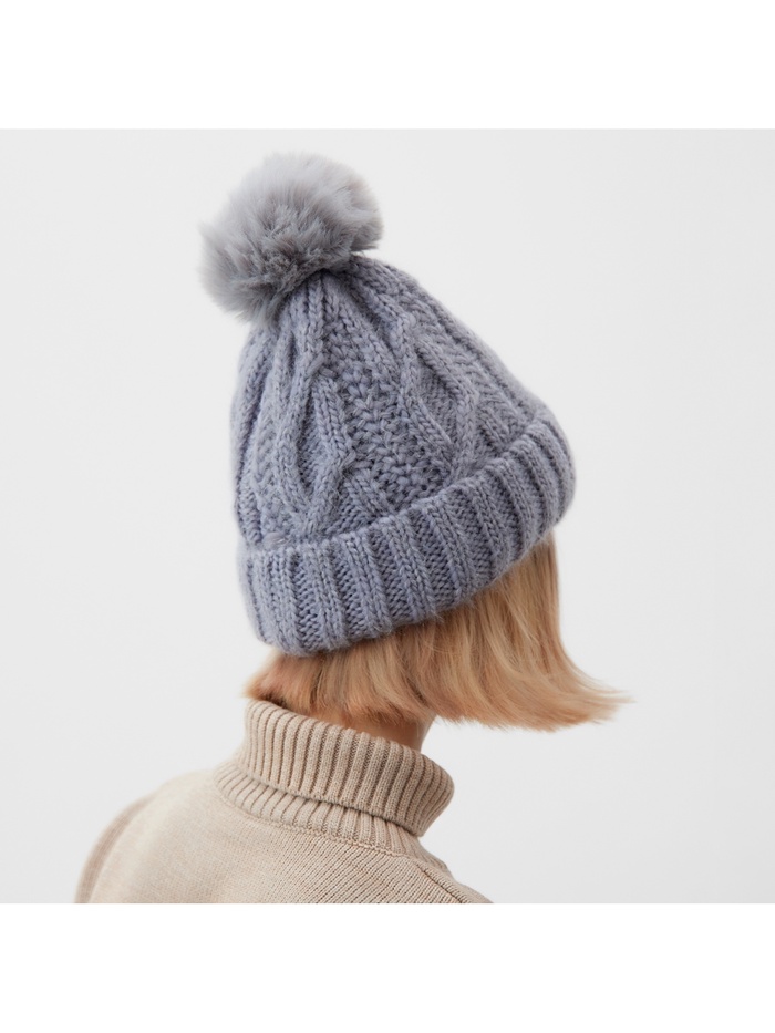 Шапка с помпоном женская MINAKU, серая, размер 56-58