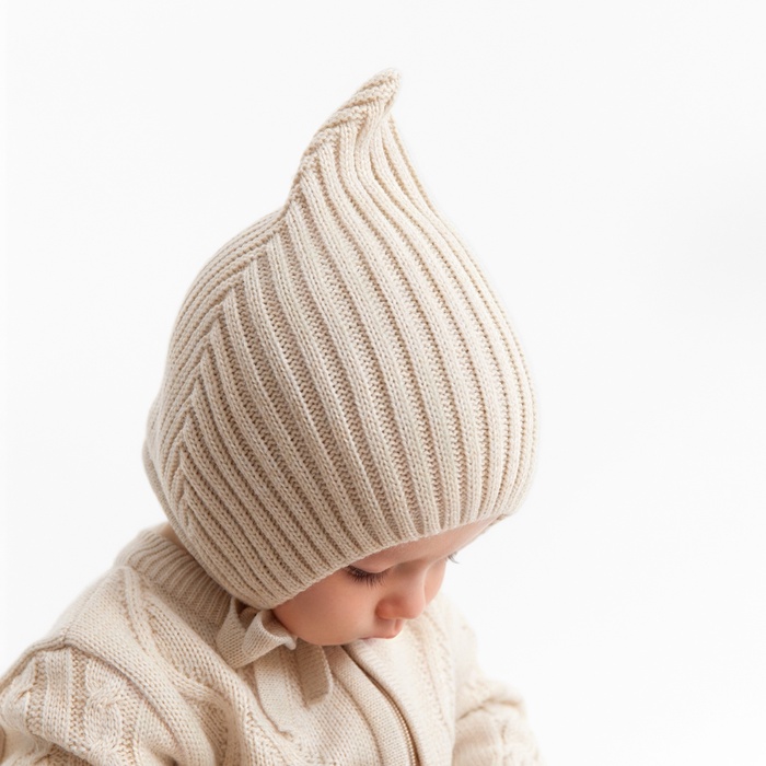 Шапка вязаная детская MINAKU, цвет бежевый, размер 42-44