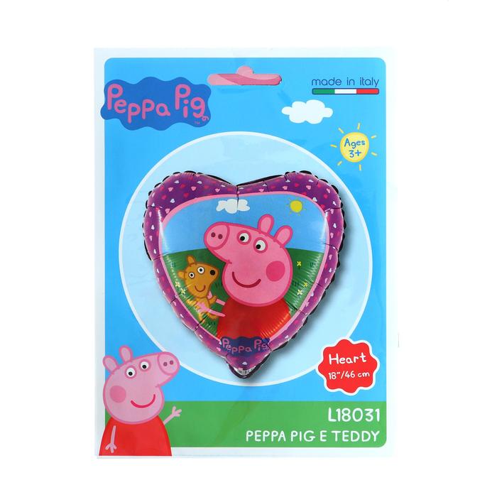 Шар фольгированный 18" «Свинка Пеппа с мишкой», сердце