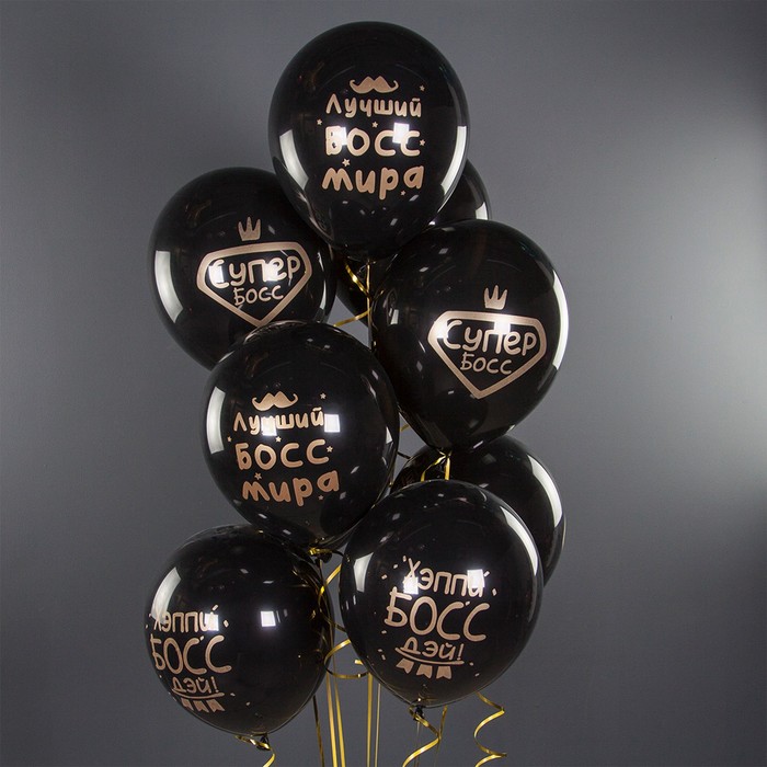 Шар латексный 12" «Лучший босс», пастель, 2-сторонний, набор 25 шт., чёрный МИКС