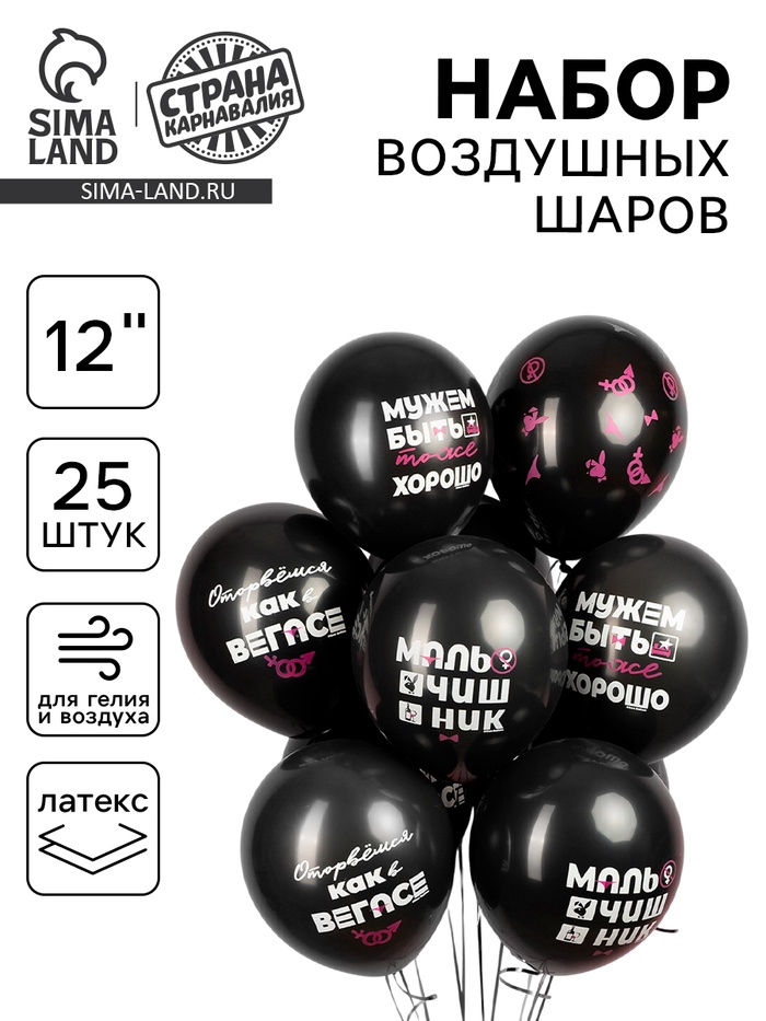 Набор воздушных шаров «Мальчишник» — это идеальный способ украсить помещение для мужского праздника! Шары могут быть надуты как воздухом, так и гелием, что делает их универсальными в использовании.