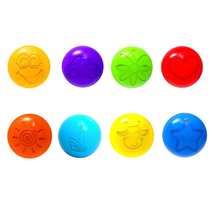Яркие разноцветные шарики для сухого бассейна добавят в детские игры больше позитива, веселья и азарта! На каждом элементе прорисована картинка: машинка, жирафик, солнышко, цветочек, сердечко, кораблик, улыбка или звёздочка. Шарики выполнены в сочных глянцевых красках, они отлично развивают у малышей восприятие цвета.