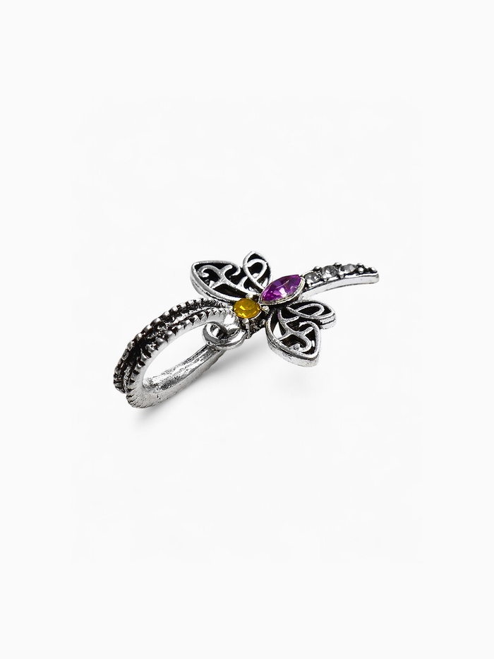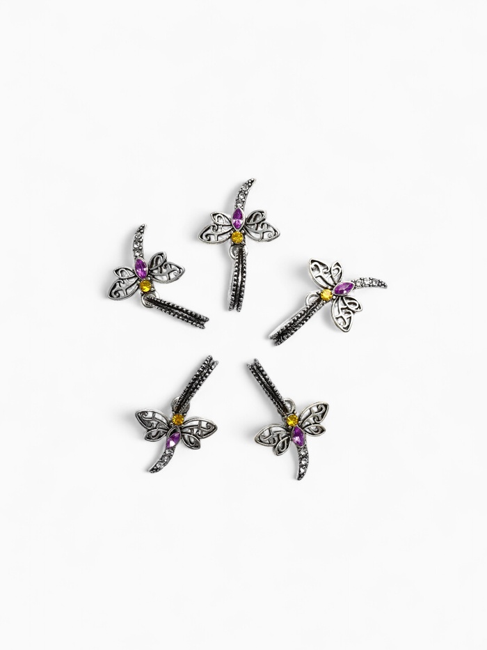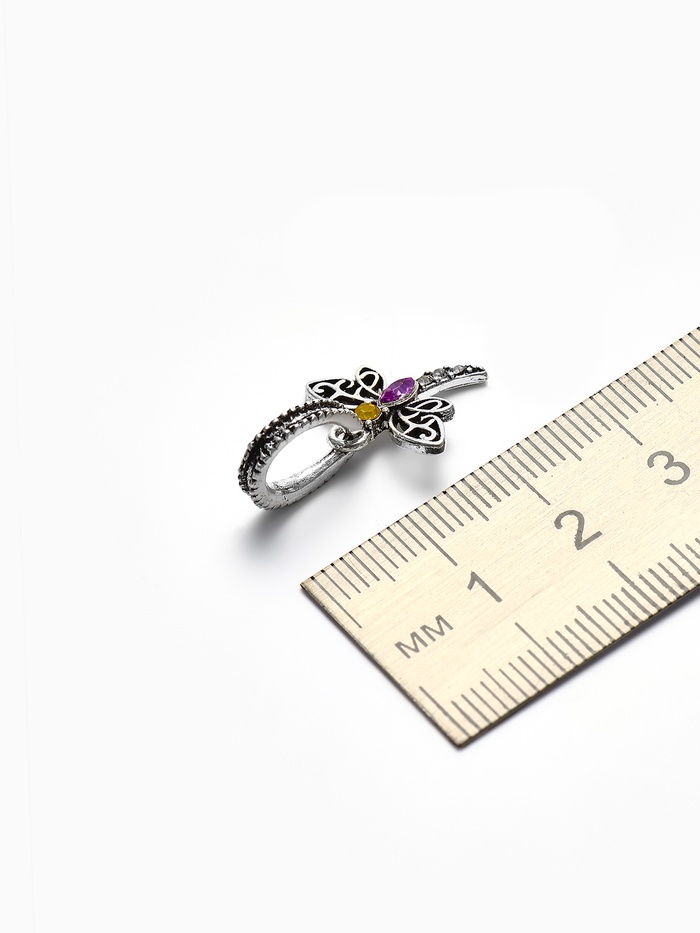 Шарм подвеска «Стрекоза с ажурными крылышками», жёлто-фиолетовый в серебре