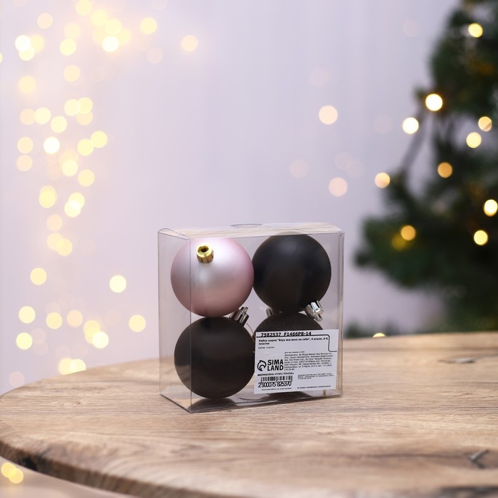 Шары ёлочные новогодние «Беру все вино на себя», пластик, d=6, 4 шт., чёрные, розовые