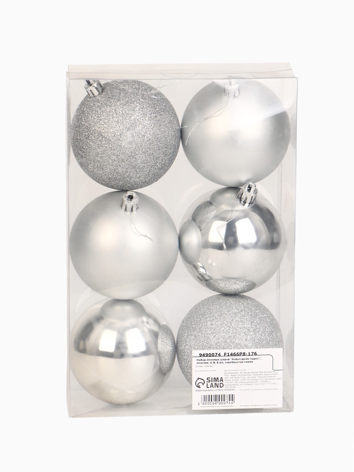 Шары ёлочные новогодние «Новогодних чудес!», пластик, d=8, 6 шт., серебристые