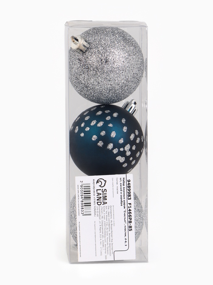 Шары ёлочные новогодние пластик «Счастья!», d=6, 3 шт., синие, серебристые