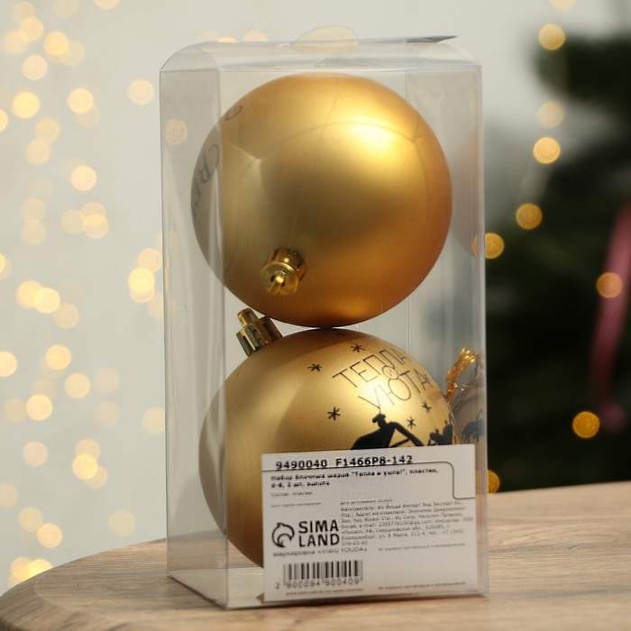 Шары ёлочные новогодние «Тепла и уюта!», пластик, d=8, 2 шт., золотые