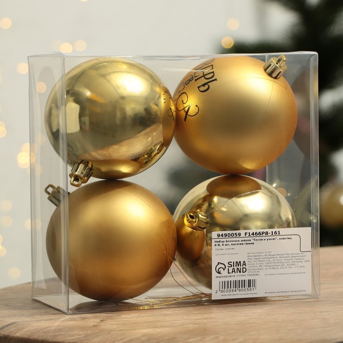 Шары ёлочные новогодние «Тепла и уюта!», пластик, d=8, 4 шт., золотые