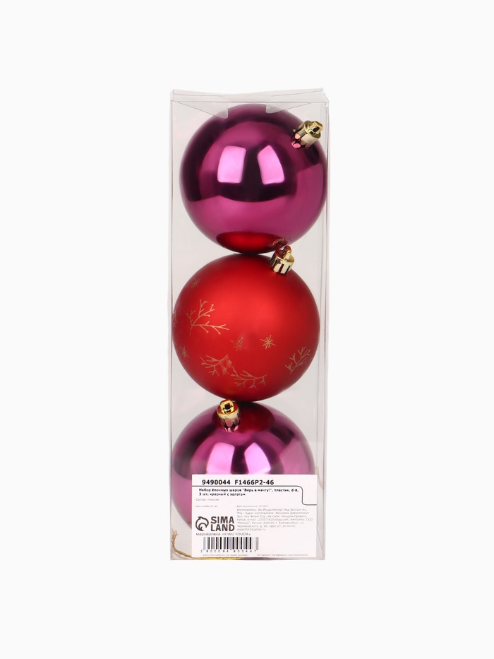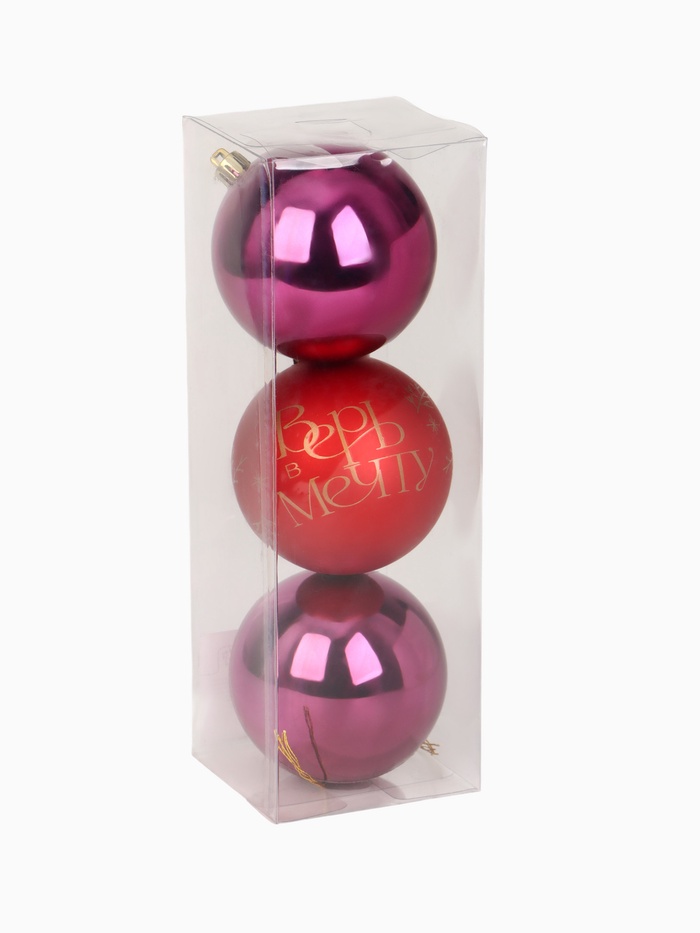 Шары ёлочные новогодние «Верь в мечту!», пластик, d=8, 3 шт., красные, розовые