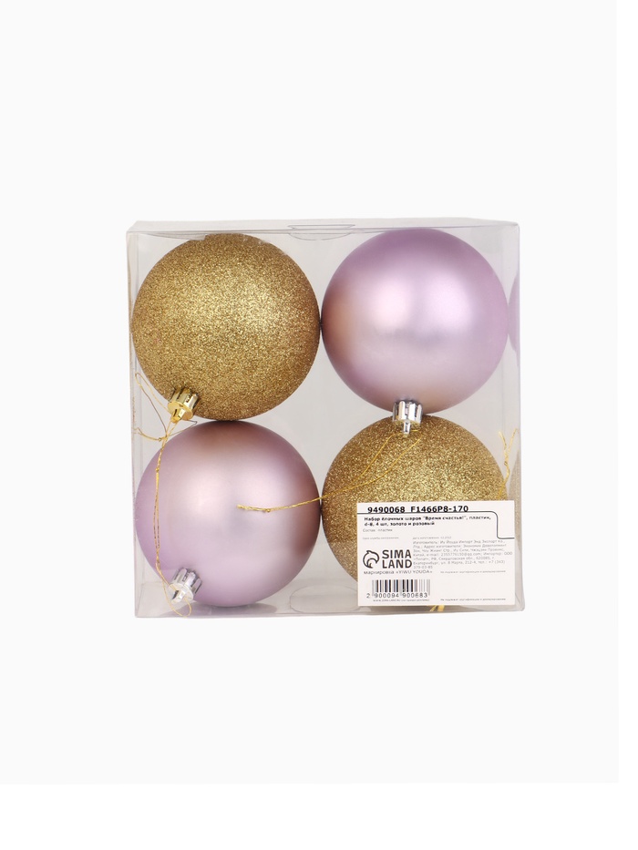 Шары ёлочные новогодние «Время счастья!», пластик, d=8, 4 шт., золотой, розовый