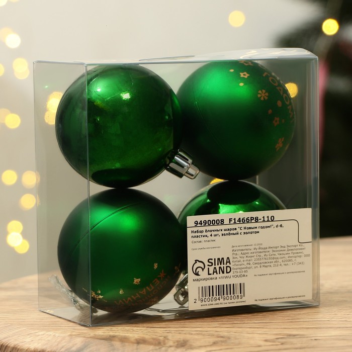 Шары ёлочные «С Новым годом!», пластик, d=6, 4 шт., зелёные