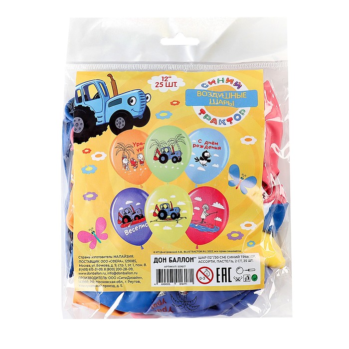 Набор латексных шаров «Синий трактор» диаметром 12 дюймов станет отличным украшением для детского праздника. В комплекте шары с рисунками персонажей популярного мультфильма. Шары можно наполнить гелием или воздухом, они идеально подходят для создания яркой и весёлой атмосферы на детском дне рождения или тематическом мероприятии.