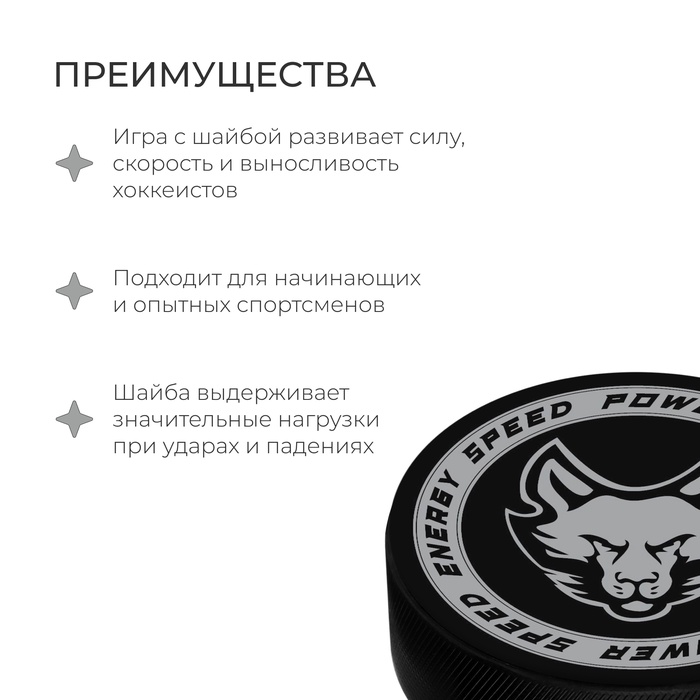 Шайба предназначена для игры в хоккей и тренировок на льду. Подходит для начинающих и опытных спортсменов. Изготовлена из вулканизированной резины, материал обеспечивает долгую эксплуатацию шайбы.