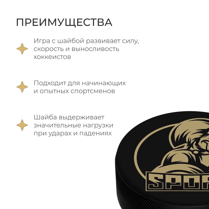 Шайба предназначена для игры в хоккей и тренировок на льду. Подходит для начинающих и опытных спортсменов. Изготовлена из вулканизированной резины, материал обеспечивает долгую эксплуатацию шайбы.