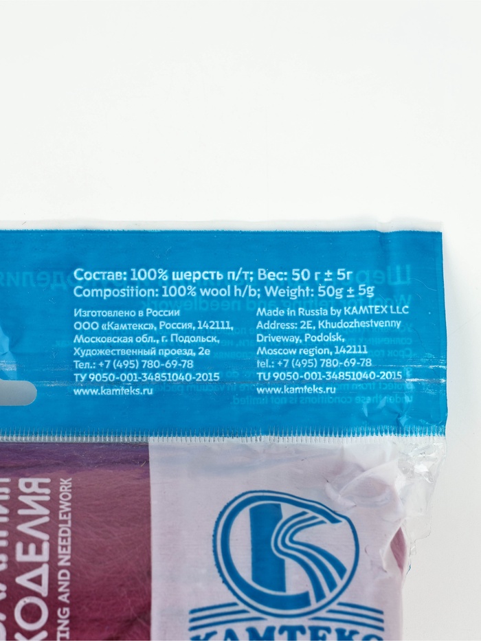 Шерсть для валяния "Кардочес" 100% полутонкая шерсть 50гр (017 лесной колокольчик)