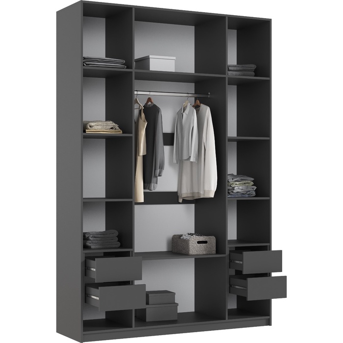 Шкаф четырёхстворчатый «Марвэл», 1600 мм, цвет браш графит/графит