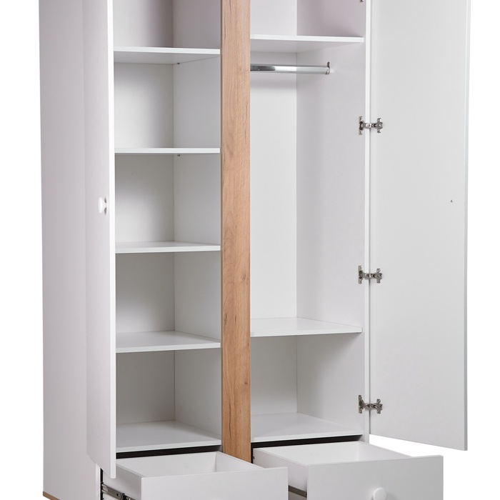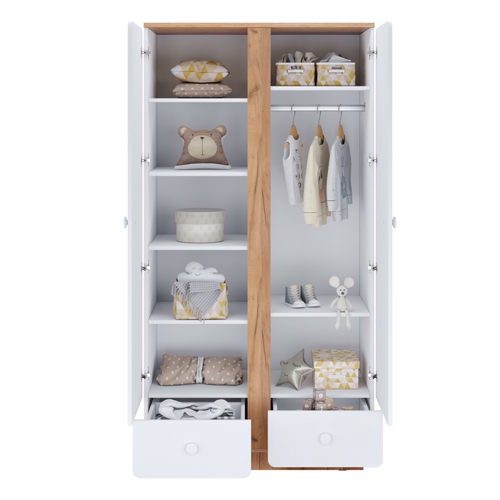 Шкаф двухсекционный Polini kids Ameli 4010, с ящиками, белый-дуб крафт золотой