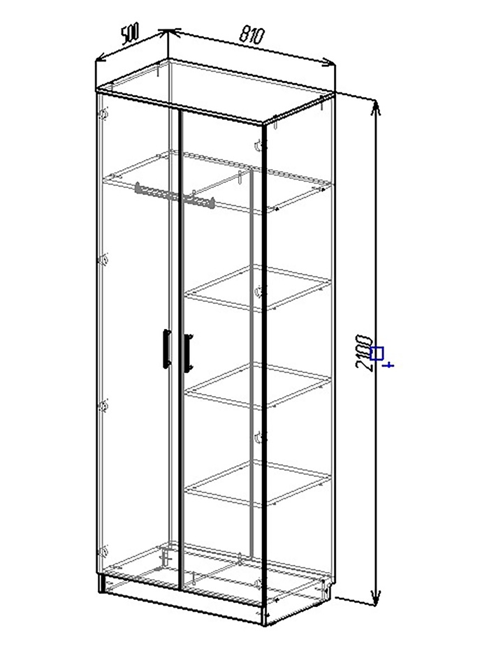 Шкаф распашной 2-х створчатый, 810х500х2100 - это удобная и вместительная система хранения, включающая 5 полок для белья и штангу для одежды. Шкаф выполнен из прочной ЛДСП с эффектным покрытием и будет отлично смотреться в интерьере любого стиля.