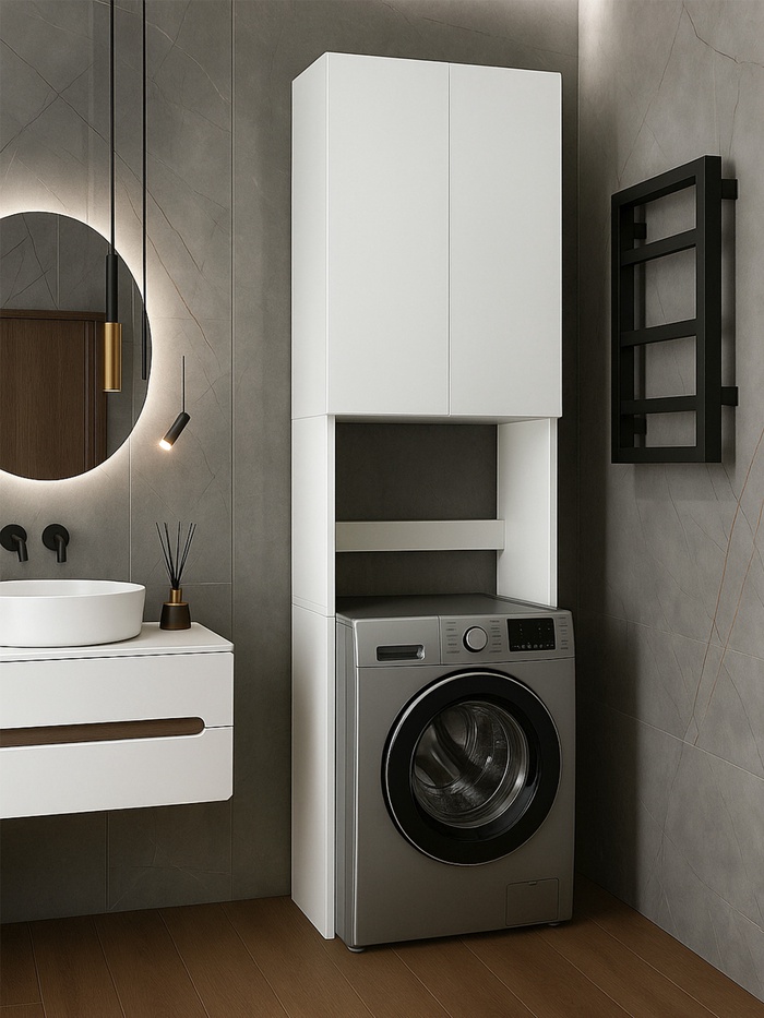 Подвесной шкаф-колонна Стоун выполнен в современном лаконичном стиле и, благодаря отсутствию лицевой фурнитуры, хорошо впишется в различные интерьеры. Произведен из влагостойкой ламинированной плиты, а его белое глянцевое покрытие, благодаря полиэфирной краске ультрафиолетового отверждения, позволяет защитить поверхность от негативного воздействия внешних факторов. Петли дверей расположены справа и оснащены интегрированным механизмом плавного довода, гарантируя безупречную работу и длительный срок службы.