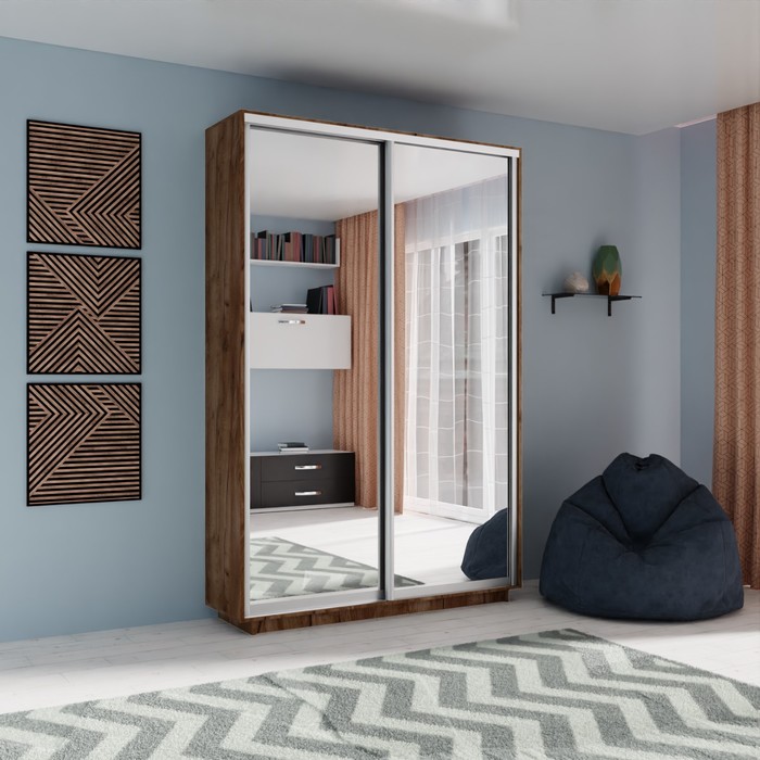 Шкаф купе двухдверный «Экспресс», с зеркалом, 1400×440×2200 мм, цвет дуб табачный