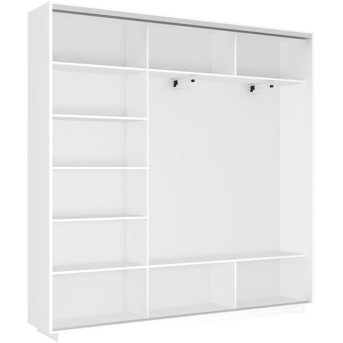 • Наполнение шкафов стандартное и достаточно удобное. Предусмотрены устойчивые полки, штанга для платьев и костюмов.