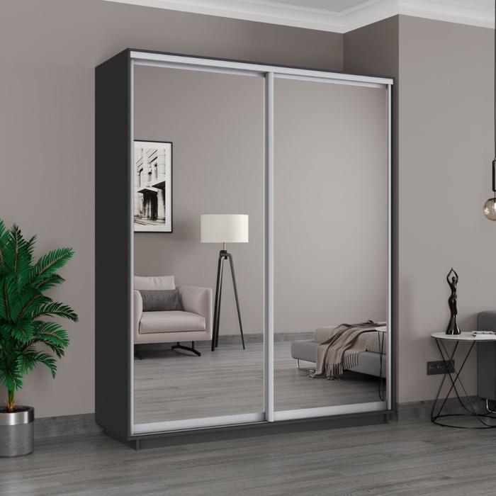 Шкаф купе двухдверный «Широкий экспресс», 1800×440×2400 мм, зеркало, цвет серый диамант