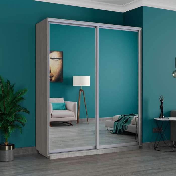 Шкаф купе двухдверный «Широкий экспресс», 1800×440×2400 мм, зеркало, ясень шимо светлый