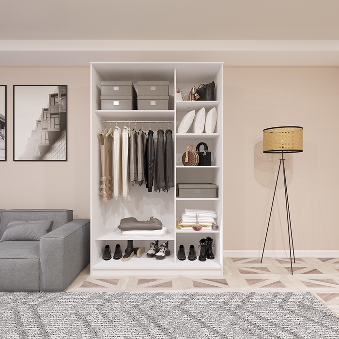 Шкаф-купе Хит-22-15-15, 1500×620×2200 мм, ЛДСП/зеркало, цвет белый шагрень