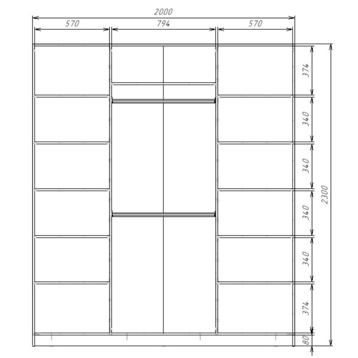 • Увеличенные габариты по ширине (от 160 до 220 см.) и высоте (230 см.) в сравнении с размерами классического шкафа-купе