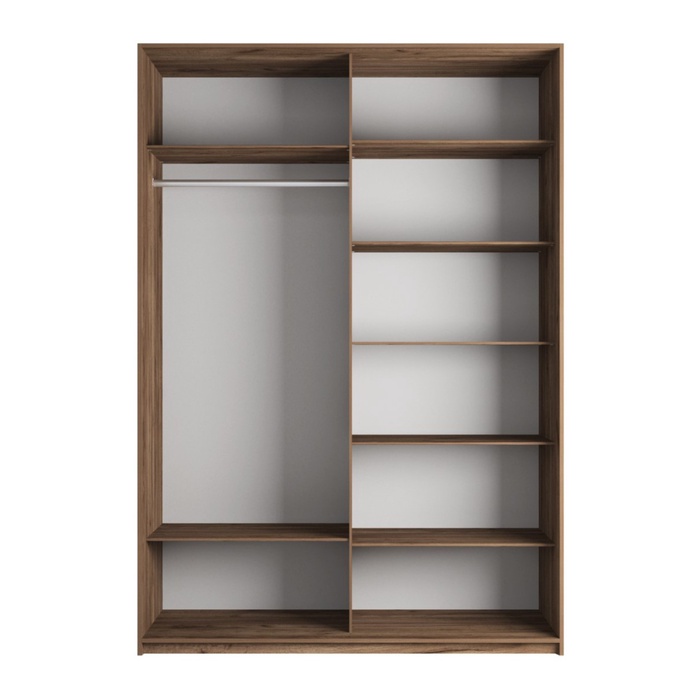 Полки делают систему хранения еще более удобной. Шкаф становится максимально вместительным. Каждая полка выдерживает нагрузку на 15 кг, на них можно размещать одежду, постельное бельё и даже мелкие бытовые приборы. Полки в шкафах устанавливаются только в правом отделении.