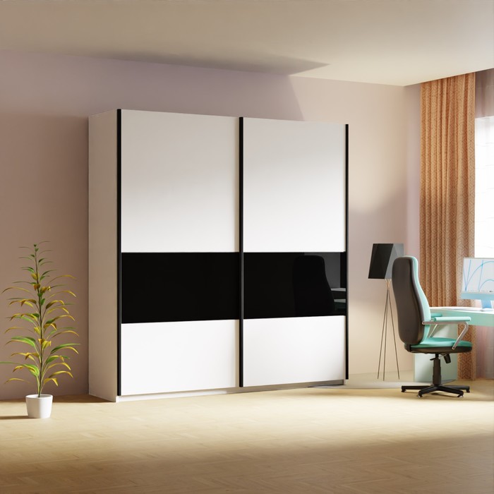 Шкаф-купе «Широкий Прайм», 2200×570×2300, 3 секции ДСП/стекло чёрное/чёрный, белый снег