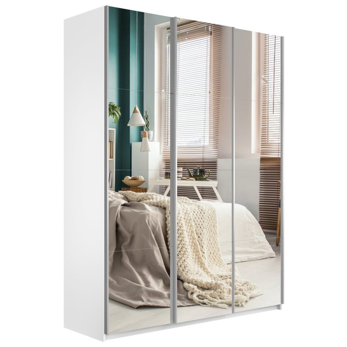 Шкаф-купе «Широкий Прайм», 2400×570×2300 мм, зеркало, цвет белый снег