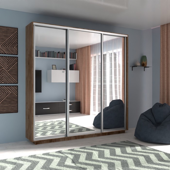 Шкаф купе трёхдверный «Экспресс», с зеркалом, 1800×440×2200 мм, цвет дуб табачный