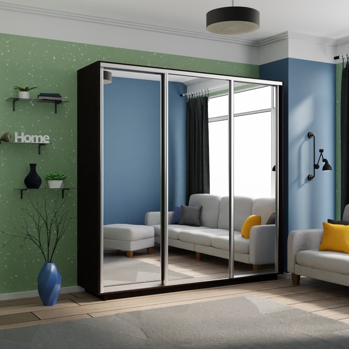 Шкаф купе трёхдверный «Экспресс», с зеркалом, 1800×440×2400 мм, цвет венге