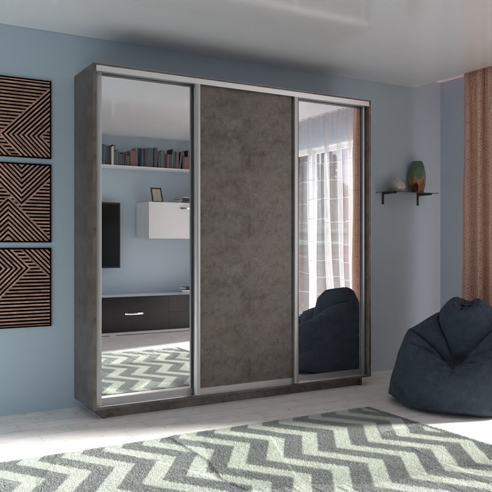 Шкаф купе трёхдверный «Экспресс», с зеркалом, 1800×440×2400 мм, ЛДСП, цвет бетон