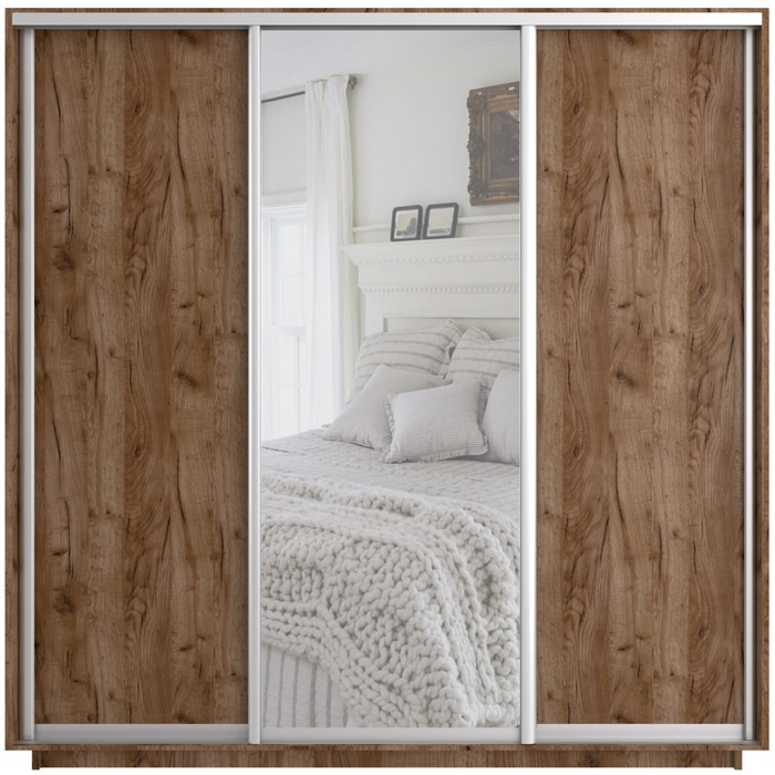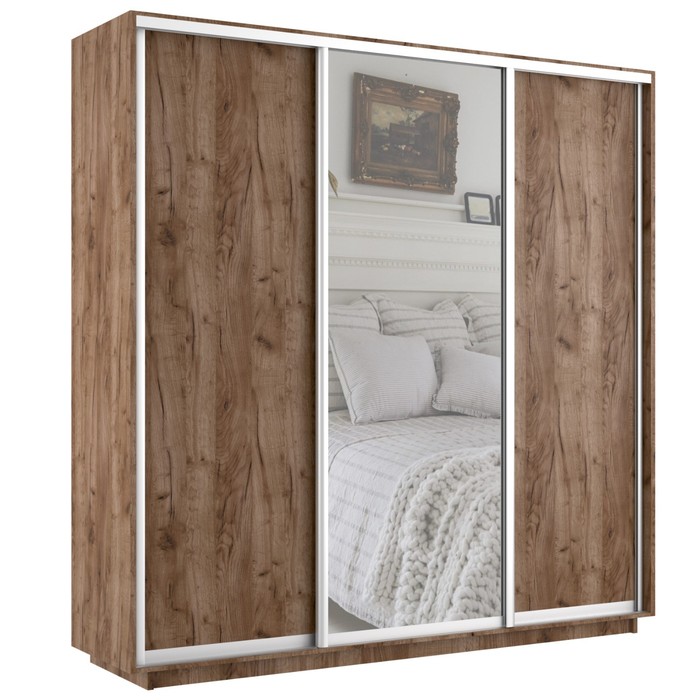 Шкаф купе трёхдверный «Экспресс», с зеркалом, 1800×600×2400 мм, ЛДСП, цвет дуб табачный