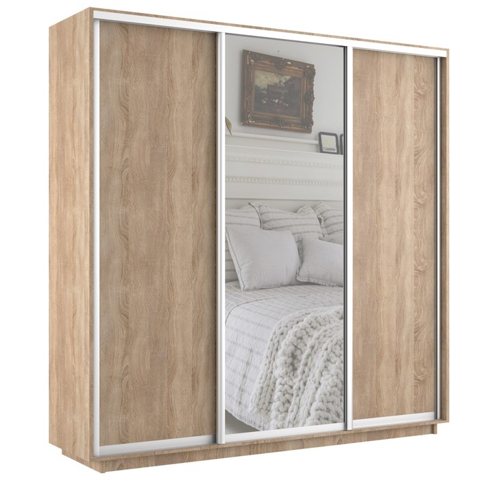 Шкаф купе трёхдверный «Экспресс», с зеркалом, 1800×600×2400 мм, ЛДСП, цвет сонома