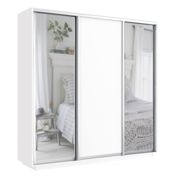Шкаф купе трёхдверный «Экспресс», с зеркалом, 2100×440×2200 мм, ЛДСП, цвет белый снег