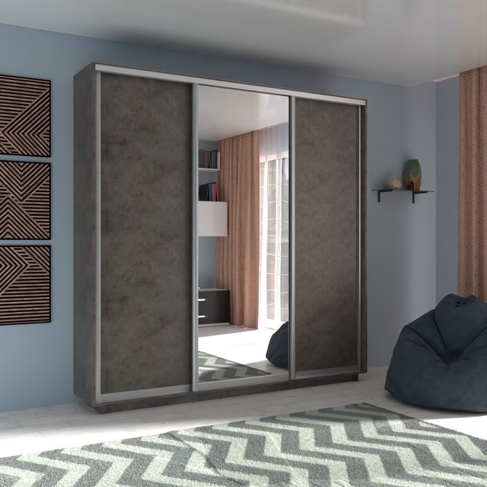 Шкаф купе трёхдверный «Экспресс», с зеркалом, 2100×440×2400 мм, ЛДСП, цвет бетон