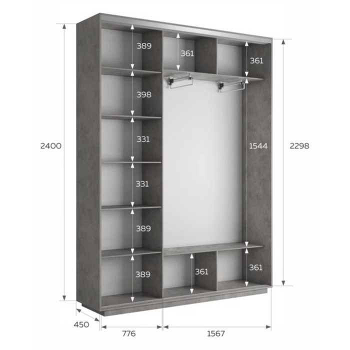 Шкаф-купе трёхдверный «Экспресс», с зеркалом, 2400×440×2400 мм, цвет бетон