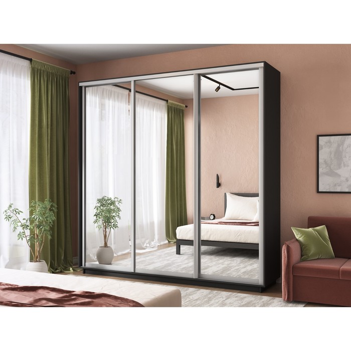 Шкаф-купе трёхдверный «Экспресс», с зеркалом, 2400×600×2400 мм, цвет серый диамант