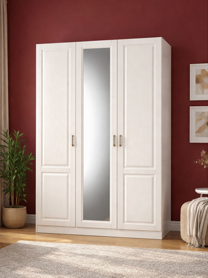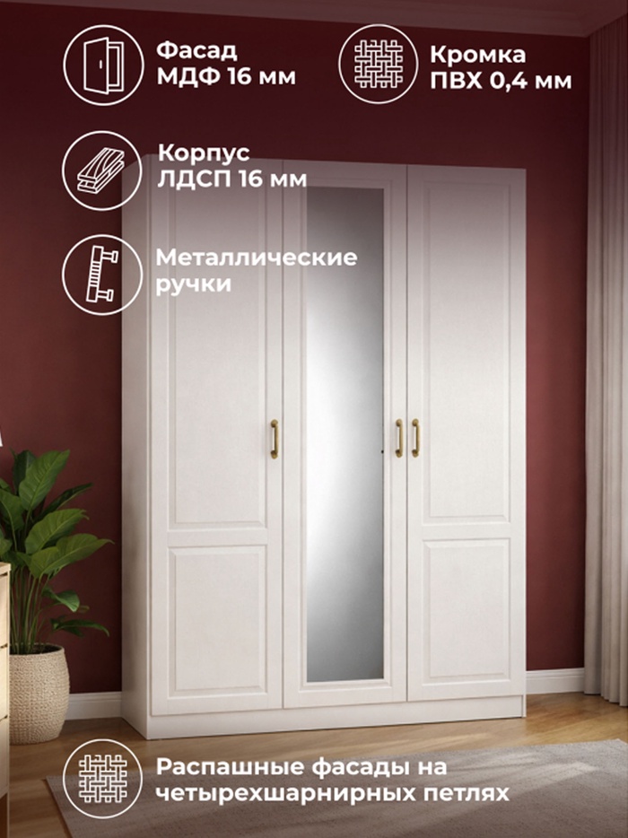 Шкаф Ливерпуль с зеркалом белый / ясень ваниль