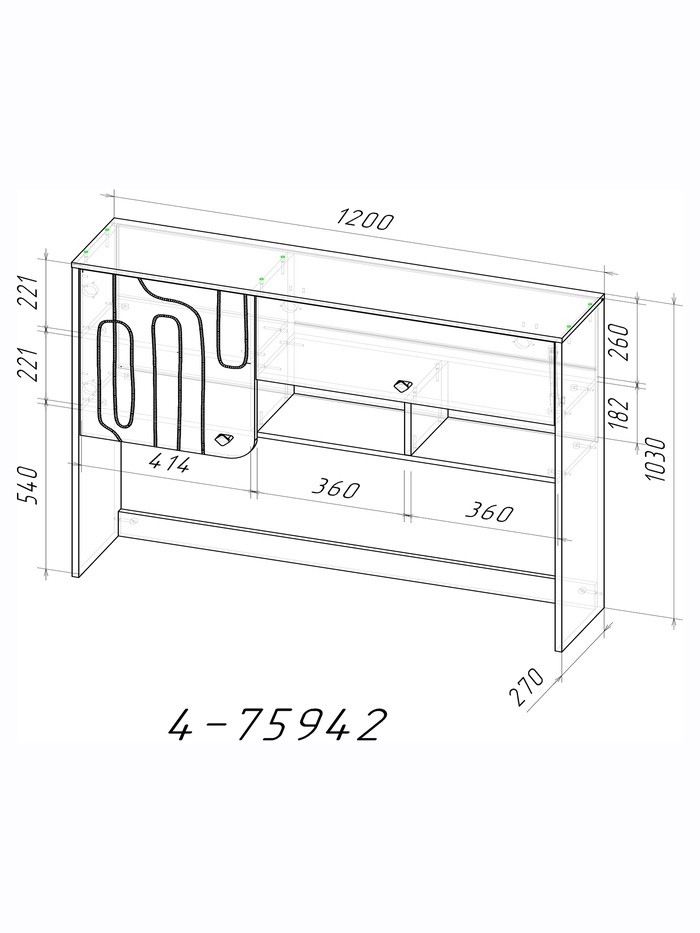 Шкаф настольный «МАРТИ», 1200×270×1030 мм, цвет графит/рамух белый