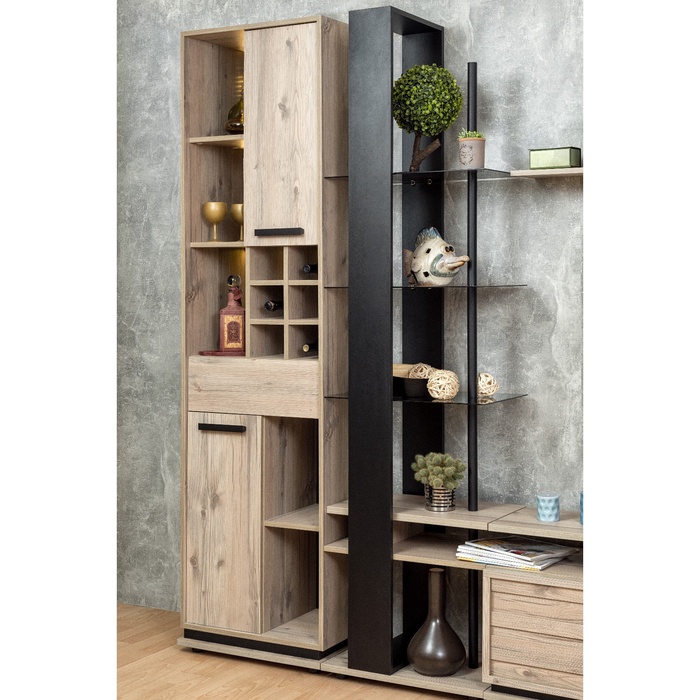 Шкаф Nature 2, 560 × 400 × 2116 мм, цвет гаскон пайн / чёрный