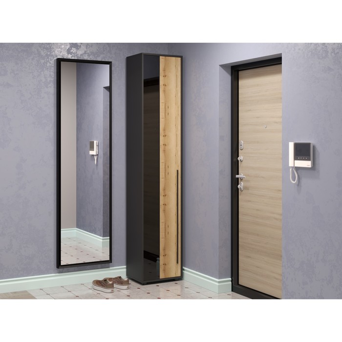 Пенал Аэлита - элегантное и функциональное решение для хранения вещей в вашем доме. Эта модель сочетает в себе классический стиль и современные тенденции дизайна, создавая гармоничное дополнение к любому интерьеру. Пенал Аэлита выполнен в сдержанном и благородном стиле, который подчеркивается сочетанием теплых оттенков дуба вотан и глубокого черного цвета. Такая комбинация придает мебели особую выразительность и утонченность. Ниши и выдвижная штанга предоставляют достаточно места для хранения одежды, обуви и других вещей. Мебель изготовлена с применением современных технологий, что гарантирует её прочность и долговечность. Классический дизайн и качественные материалы делают этот шкаф идеальным выбором для тех, кто ценит стиль и комфорт.